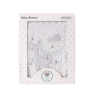 Questa copertina per neonato morbida e delicata è ideale per accompagnare i primi mesi con comfort e calore.