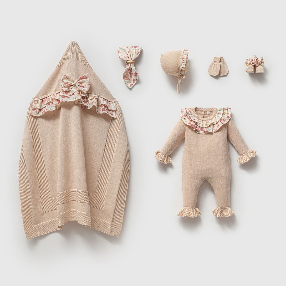 Corredino Neonata 5 Pezzi in Maglia con Colletto e Copertina