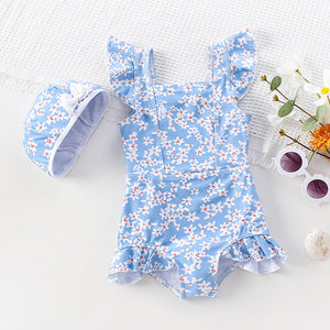 Costume Intero Bimba “Fior di Cielo” con Cuffietta