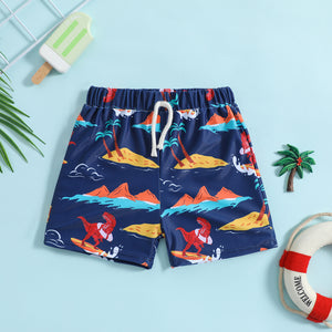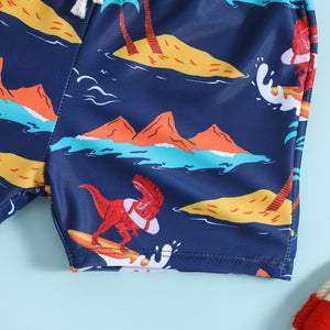 Boxer Mare Bimbo con Stampa Dinosauri Surfisti Blu Navy