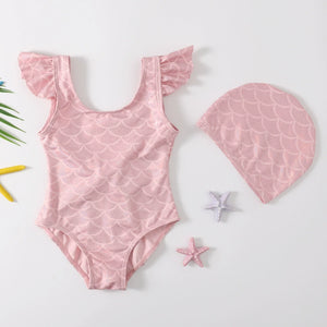 Trasforma la tua piccola in una sirenetta chic con questo delizioso costume intero rosa! Caratterizzato da una texture effetto scaglie e un maxi fiocco lucido sulla schiena, è il perfetto mix tra comfort e stile. Le maniche a volant aggiungono un tocco romantico, mentre la cuffietta coordinata protegge la testolina dal sole durante le giornate in spiaggia o in piscina.