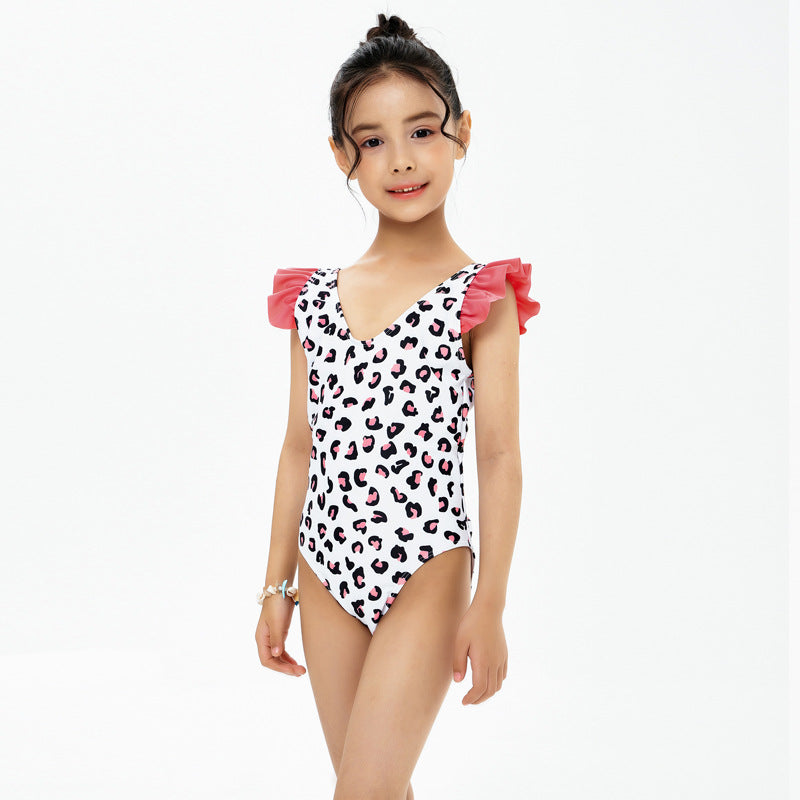 Costume intero bambina stampa animalier - con volant rosa sulle spalle