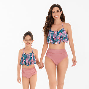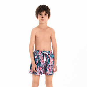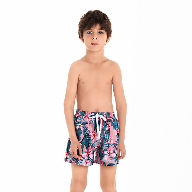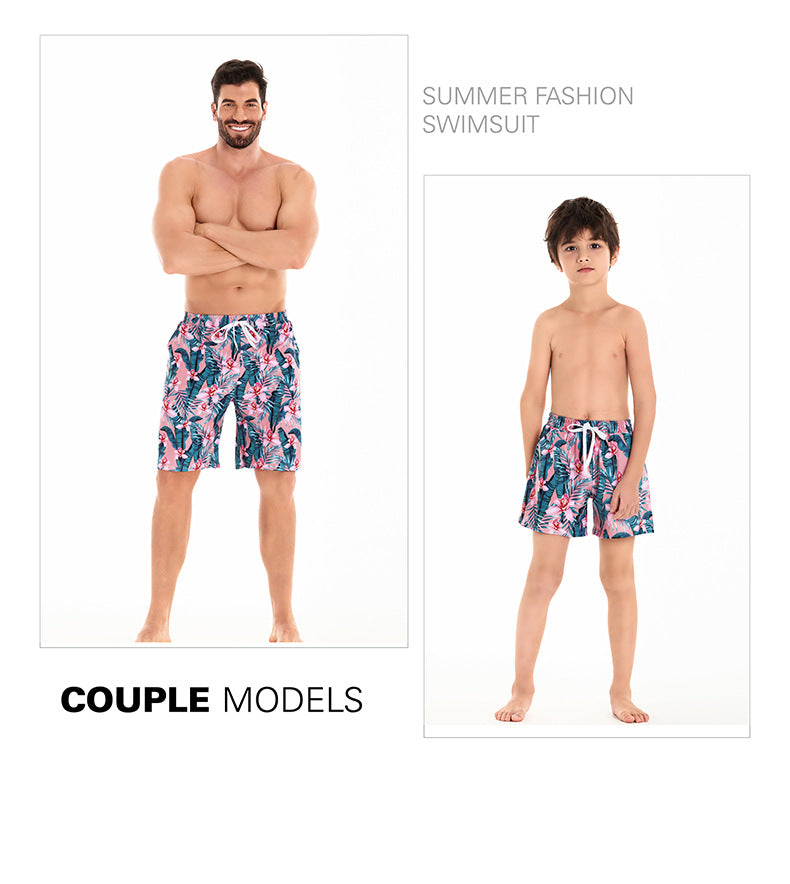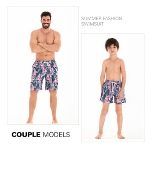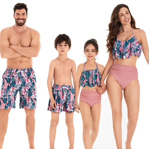 Costumi coordinati famiglia – Stampa tropicale rosa e verde