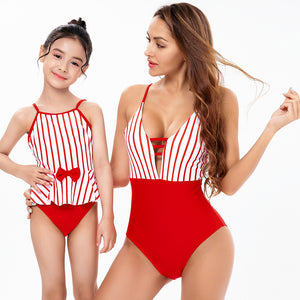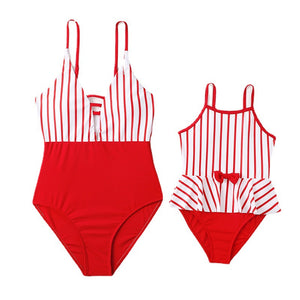 Home Costumi coordinati mamma e figlia – Stile marinaro a righe rosse