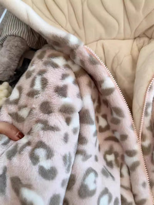 Calda, coccolosa e irresistibile! Questa giacca invernale per bambina è realizzata in morbida eco-pelliccia rosa con stampa animalier beige e bianca, perfetta per affrontare le giornate fredde con stile. L’interno è foderato e imbottito per garantire massimo calore, mentre il cappuccio con simpatiche orecchie aggiunge un tocco giocoso al look. Dotata di pratica zip frontale e polsini elasticizzati, è ideale per look casual e glamour allo stesso tempo. Un capo must-have per l'inverno delle piccole fashioniste!