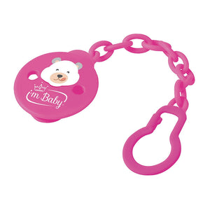 Catenella portaciuccio in polipropilene (PP) di alta qualità per neonati e bambini. Ad una estremità della catenella c’è un fermaglio per fissarlo agli indumenti del neonato o del bambino.