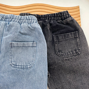 Perfetti per il gioco e le giornate all'aperto! Questi jeans da bambino uniscono comfort e stile grazie alla vita elasticizzata con dettaglio a righe e ai bottoni decorativi. Disponibili in due varianti di colore — denim azzurro chiaro e nero slavato — sono facili da abbinare a qualsiasi outfit casual. Il fondo arrotolabile completa il look con un tocco moderno e pratico.