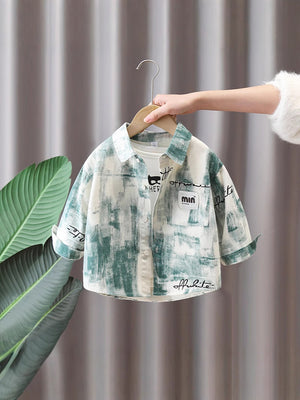 Camicia Artistica Bambino – Stampa Effetto Pennellata e Dettagli Scritti