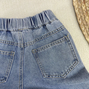 Jeans Bambino Estivi con Strappo e Risvolto Stile Casual