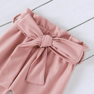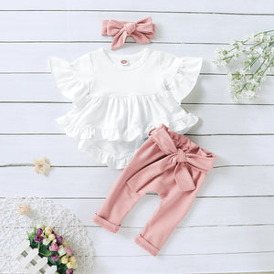 Maglia Volant, Pantaloni con Fiocco e Fascia Coordinata