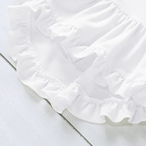 π Una Maglietta bianca con doppio volant e maniche a farfalla, comodo e delicato sulla pelle.