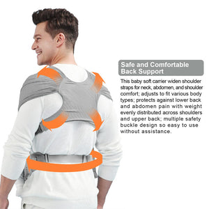 Progettato per sostenere correttamente la schiena del genitore e garantire la posizione ergonomica del bambino (M-shape), riduce i dolori a spalle e zona lombare distribuendo il peso in modo uniforme. Facile da indossare da soli grazie al sistema di chiusura con fibbie multiple.