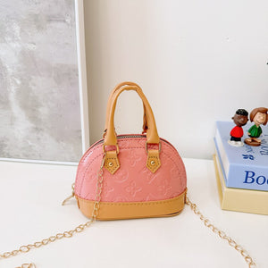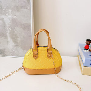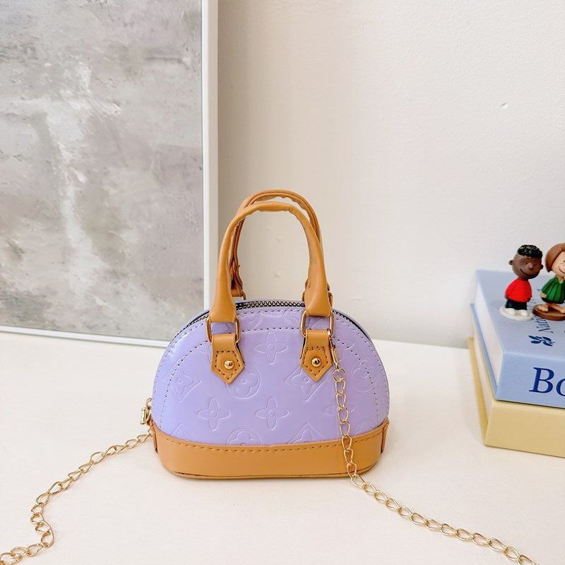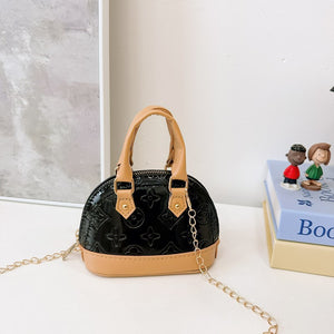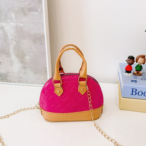 Set di mini borse eleganti per bambine, disponibili in una gamma di colori vivaci: nero, rosa, viola, blu, giallo, verde e altri. Ogni borsa è realizzata in materiale lucido con rilievi decorativi, completata da manici marrone chiaro e una tracolla a catena dorata per uno stile chic e versatile. Perfette per giochi di ruolo, eventi speciali o come accessorio alla moda per le piccole appassionate di stile. Un'idea regalo adorabile e funzionale!