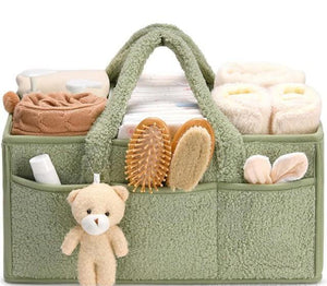 Pratico organizer portaoggetti in morbido tessuto effetto sherpa, perfetto per mantenere in ordine tutto l’occorrente del tuo bambino: pannolini, salviette, creme, spazzoline e accessori. Dotato di manici resistenti, numerose tasche interne ed esterne e un simpatico portachiavi orsetto in peluche, unisce funzionalità e stile.