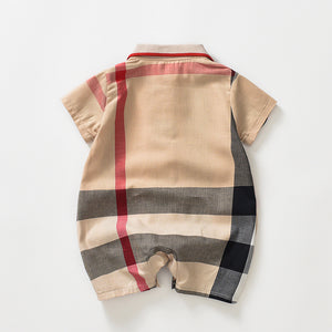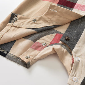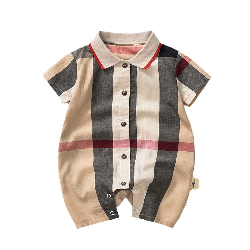 Descrizione: Raffinato pagliaccetto per neonato con motivo a quadri classico, realizzato in tessuto morbido e traspirante per garantire comfort durante tutto il giorno. Dotato di bottoni frontali e sul cavallo per una facile vestizione e cambio pannolino. Il colletto a contrasto con dettagli in rosso aggiunge un tocco di eleganza al design. Perfetto per occasioni speciali, servizi fotografici o semplicemente per un look chic quotidiano.