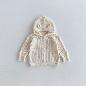 Cardigan Neutro Bimba/ Bimbo con Cappuccio e Orecchie – Maglia Morbida in Cotone