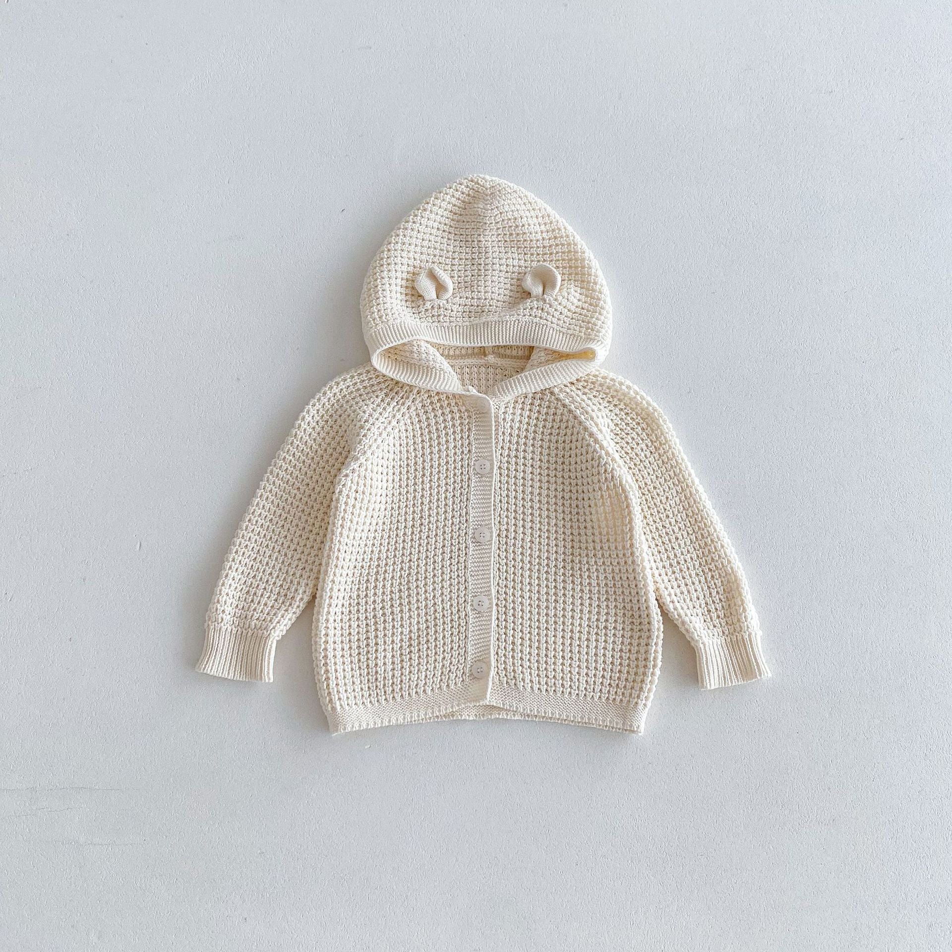 Home Cardigan Neutro Bimba/ Bimbo con Cappuccio e Orecchie – Maglia Morbida in Cotone