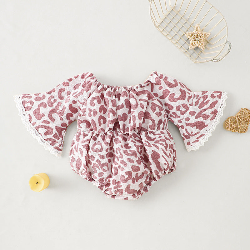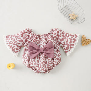 Pagliaccetto Neonata Animalier con Maniche a Campana e Fiocco