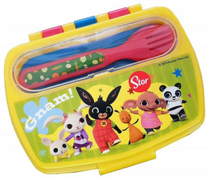 Porta merenda e set di posate con design Bing, ideale per la scuola o per le occasioni fuori casa. Il contenitore comprende anche una pratica sezione superiore per le posate.