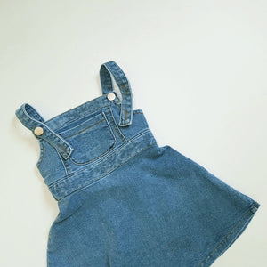 Un classico senza tempo rivisitato in chiave baby! Questa salopette a gonna in denim per bambina è perfetta per creare look pratici e adorabili. Realizzata in jeans resistente ma morbido, presenta bretelle regolabili con bottoni metallici e una simpatica taschina frontale. Il taglio svasato dona libertà di movimento, rendendola ideale per le giornate di gioco, passeggiate o uscite casual. Facile da abbinare con T-shirt, camicette o maglioncini per ogni stagione!
