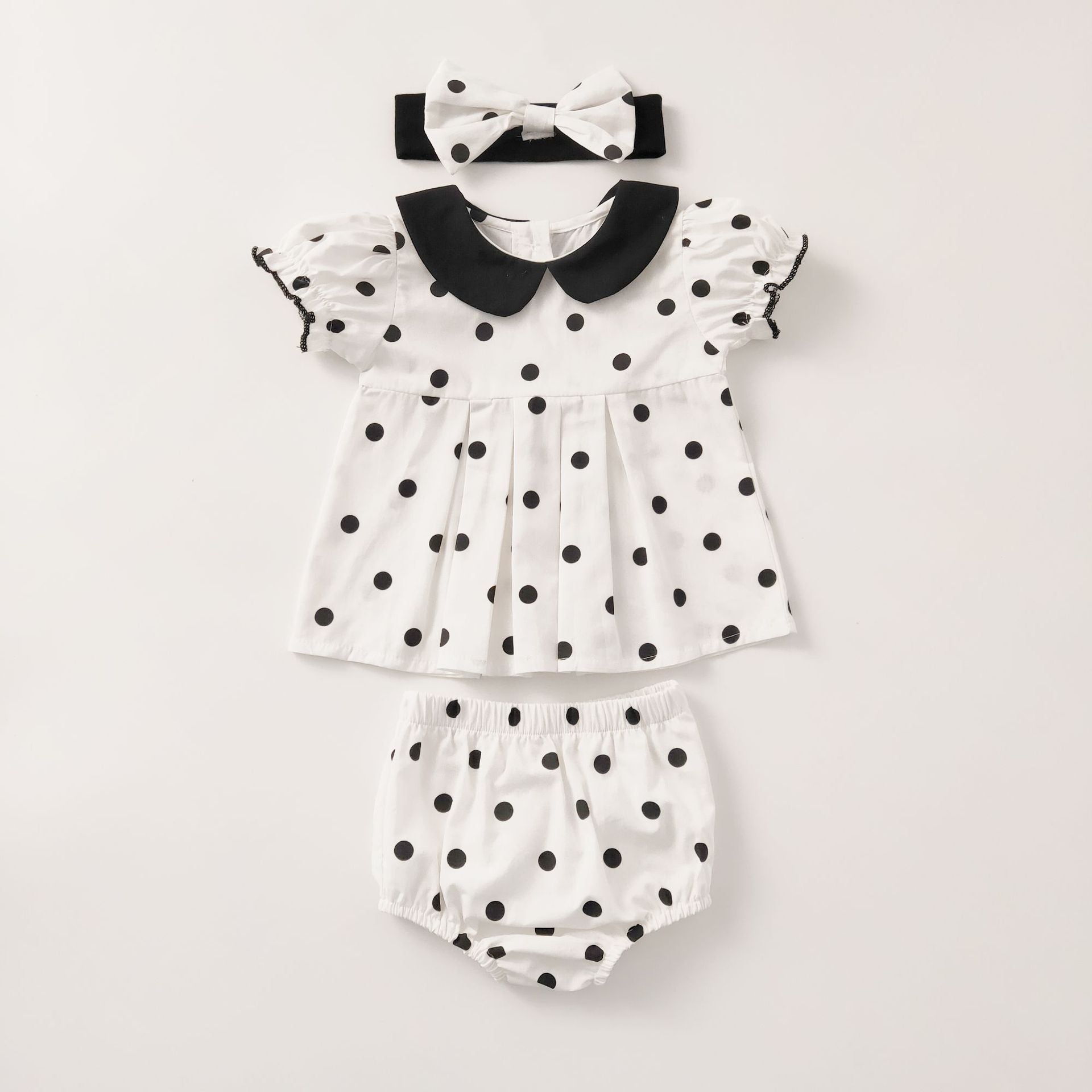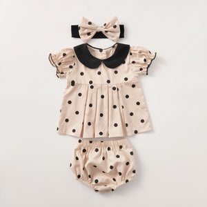 Set Completo con Pois per Bambine - Blusa, Bloomers e Fascia Coordinata