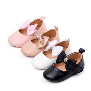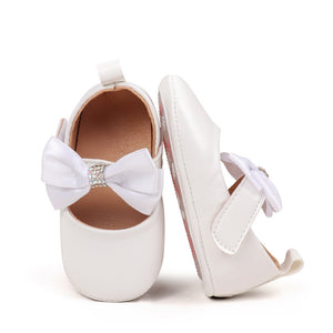 Rendi speciale ogni occasione con queste scarpine eleganti per neonata, decorate con un romantico fiocco in raso e un delicato dettaglio di strass. Perfette per cerimonie, battesimi o semplicemente per sentirsi una principessa ogni giorno!
