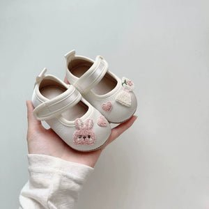 I ricami con orsetto, fiocco e cuoricini rendono queste scarpine un vero amore, mentre la chiusura a strappo regolabile assicura una calzata perfetta e facile da indossare.