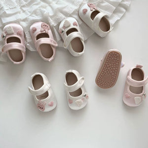Scarpine Neonato con Ricami Orsetto e Cuoricini – Suola Antiscivolo