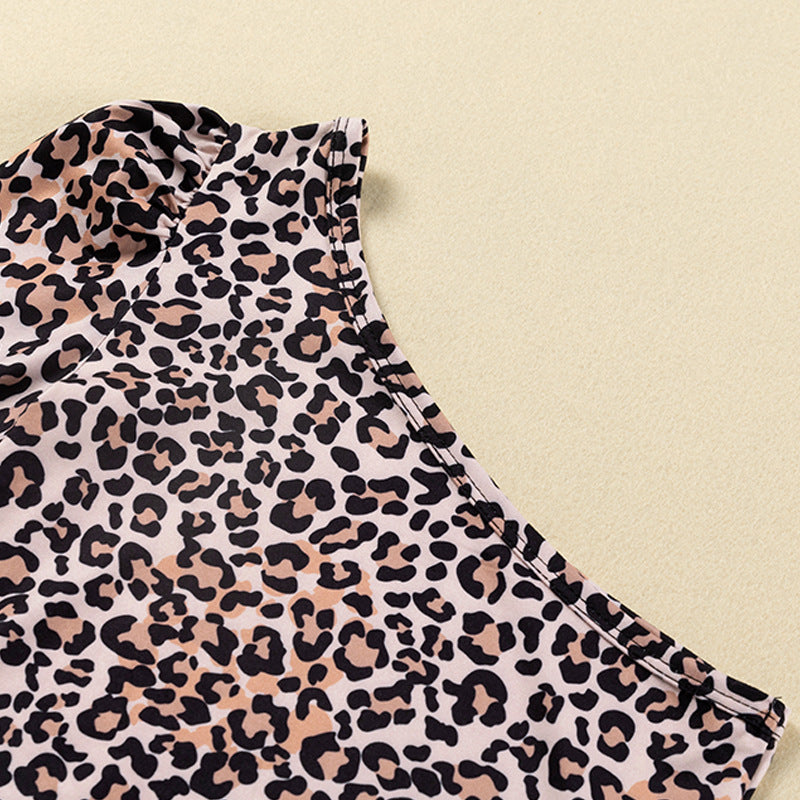 Questo set alla moda è perfetto per le piccole fashioniste che amano distinguersi. Composto da un top a fantasia animalier con scollo asimmetrico e pantaloni neri a zampa con dettagli plissettati, offre un look audace e chic per ogni occasione speciale o per un'uscita casual con stile.