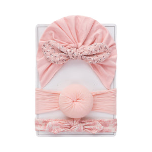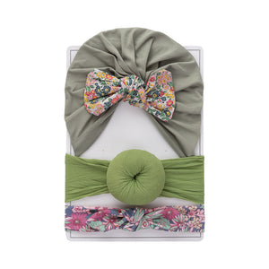 Set di Turbante e Fasce per Neonati con Fiocco Stampato