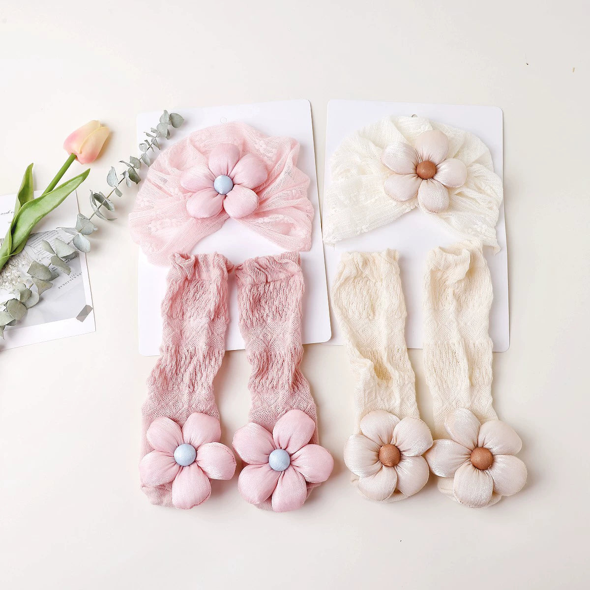 Home Set Fascia e Calzini Neonata con Fiore Gigante – Accessori Eleganti per Bambina