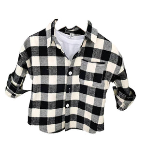Un look moderno e intramontabile per i piccoli dallo stile deciso! Questo completo include una camicia a quadri bianco-nera in flanella morbida, abbinata a pantaloni cargo neri con tasche laterali e risvolti. Il design è pensato per garantire comfort e praticità nei movimenti, ideale per la scuola, le uscite in famiglia o una passeggiata in città. Le scarpe sportive completano il look casual perfetto per ogni giorno. Stile semplice, ma con carattere!