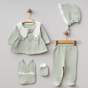 Set Neonato 5 Pezzi Beige con Colletto Ricamato – Eleganza e Comfort