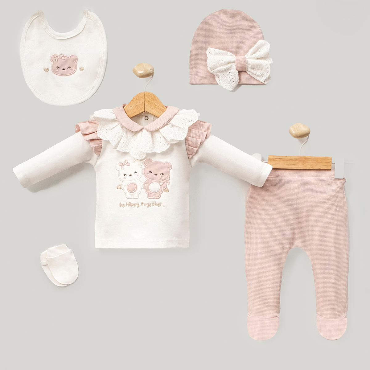 Set Neonata 5 Pezzi con Orsetti Ricamati – Vari Colori