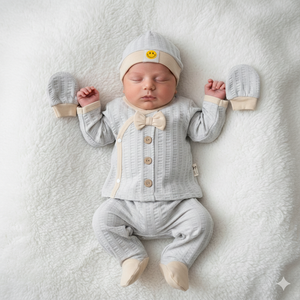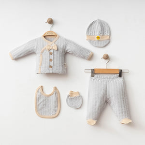 Set Neonato/ Bimbo 5 Pezzi in Cotone Eleganza e Comfort- Grigio e Beige