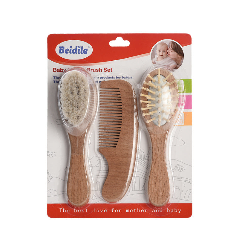 Elegante set in legno naturale studiato per la cura delicata dei capelli del neonato. Include tre strumenti pensati per diverse esigenze: