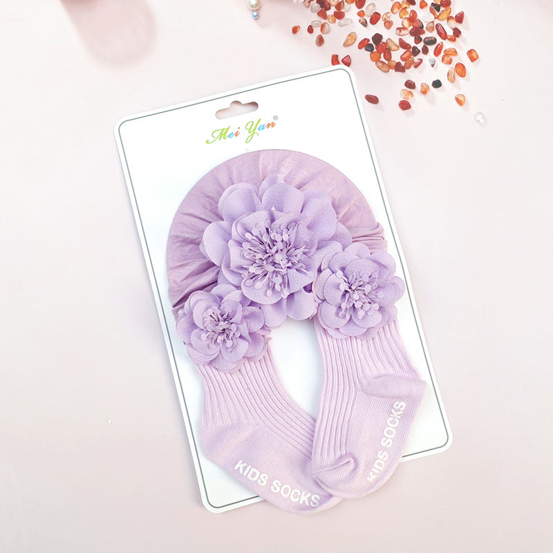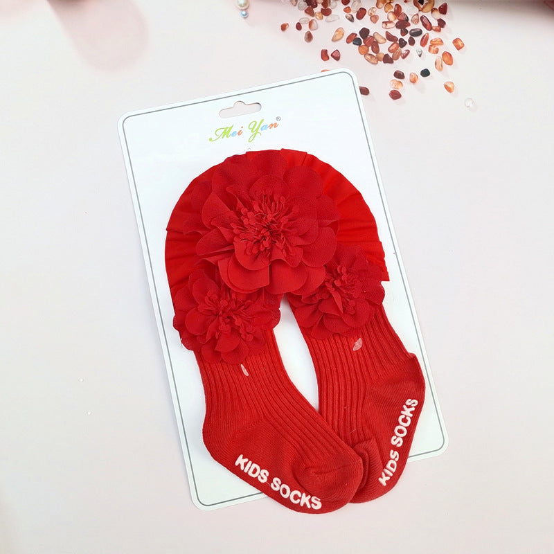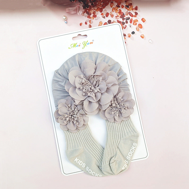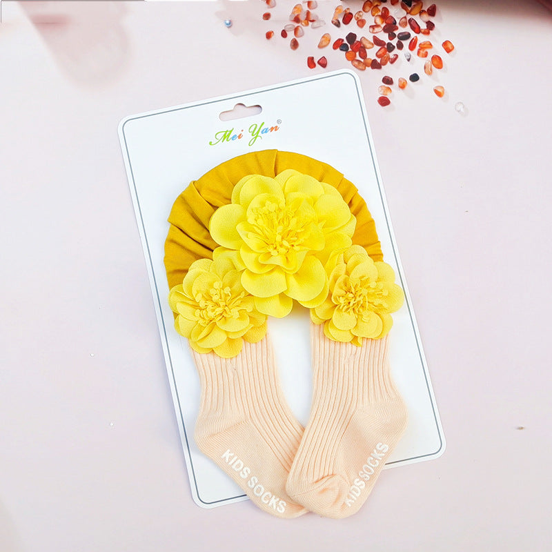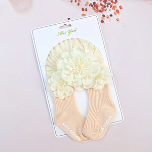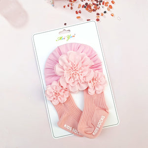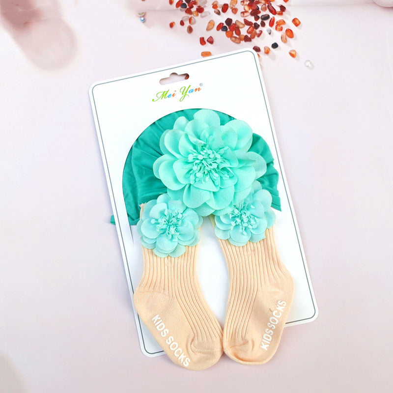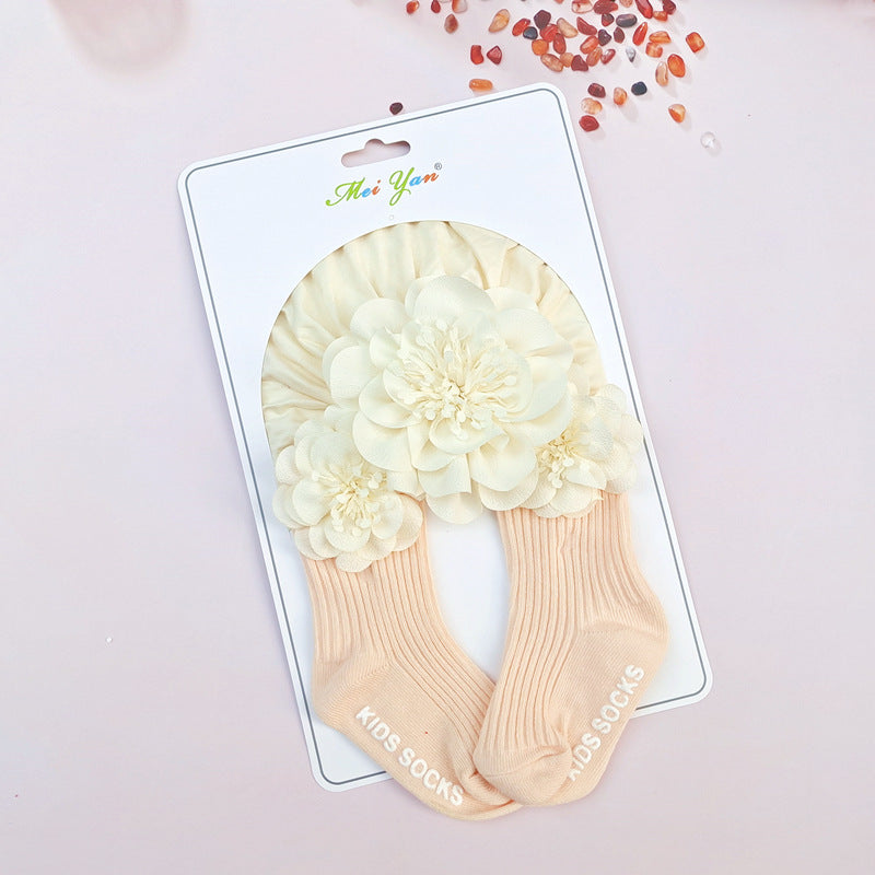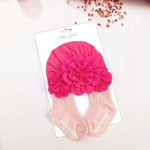 Set Turbante e Calzini per Bambina con Dettagli Floreali