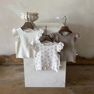 T-Shirt Bambina con Maniche Volant Cotone Morbido 3 Varianti