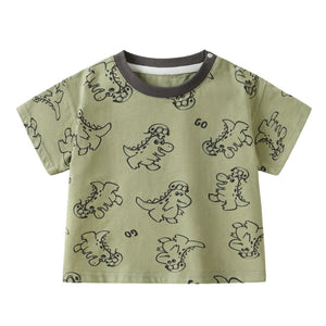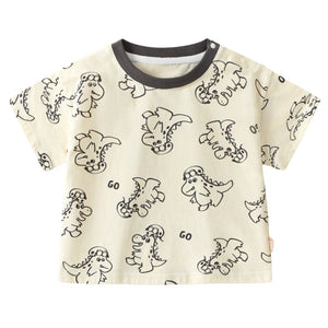 T-shirt Bimbo "Go Dino!" Stampa Dinosauri con Dettaglio a Contrasto