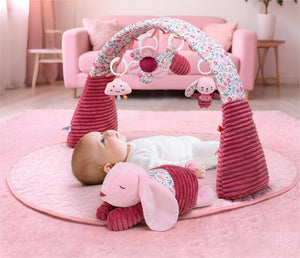 Morbido tappetino da gioco con palestrina pensato per stimolare lo sviluppo motorio e sensoriale del neonato. Il design rosa con archi imbottiti e dolci pupazzetti appesi cattura l’attenzione e invita il bambino al gioco in totale sicurezza.