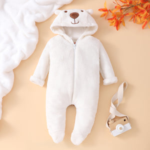 Questa tuta intera in pile ultra morbido è perfetta per tenere il tuo piccolo al caldo nelle giornate più fredde. Con cappuccio decorato da un simpatico musetto da orsetto e piedini coperti, è un must-have per l’inverno!