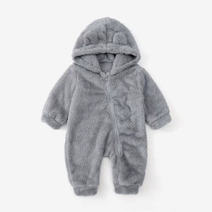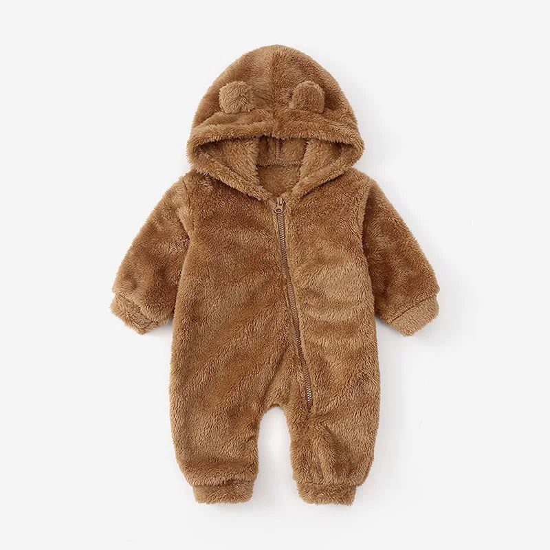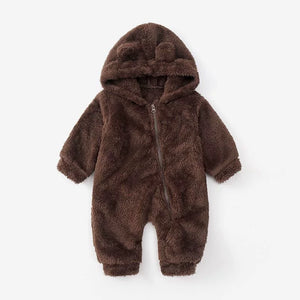 Tuta orsetto in pile con cappuccio e orecchiette β tutina invernale neonato unisex