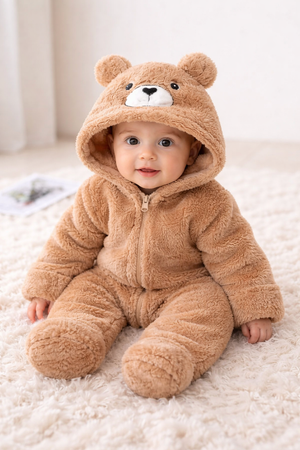 Tenerezza allo stato puro! Queste tute invernali effetto peluche sono pensate per avvolgere il tuo neonato in un abbraccio caldo e soffice. Ogni modello è dotato di cappuccio con faccina ricamata e orecchie 3D: orsetto marrone, coniglietto panna o simpatico panda. La chiusura frontale con zip rende il cambio pratico e veloce, mentre il tessuto super morbido è ideale per le giornate più fredde. Perfette per passeggiate invernali, shooting fotografici o come regalo coccoloso e originale!