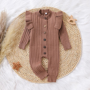 Tutina Neonato in Maglia con Volant – Bottoni in Legno
