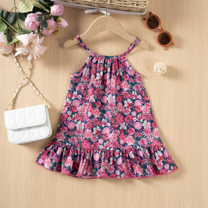 Vestito Estivo Bimba con Fantasia Floreale Spalline Sottili e Volant