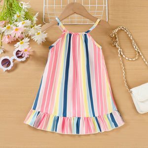 Vestito Estivo Bimba a Righe Colorate Spalline Sottili e Volant