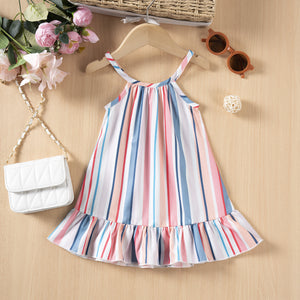 Vestito Estivo Bimba a Righe Colorate  Spalline Sottili e Volant